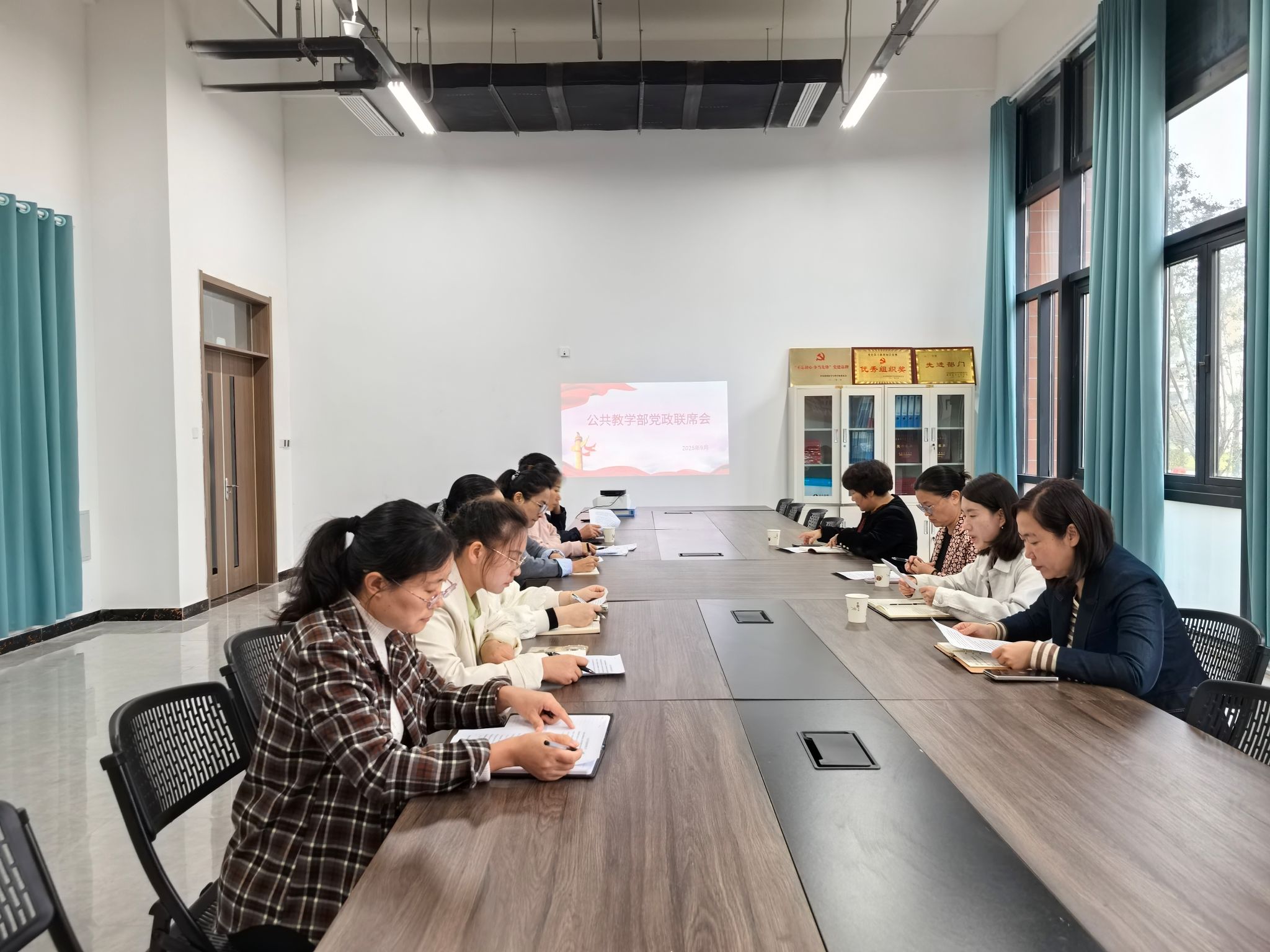 9月22日,公共教学部召开党政联席会议,党总支书记李岩主持会议,学校副校长代爱英、公共教学部主任任俊莲、副书记孙蕊以及各教研室代表参加会议。