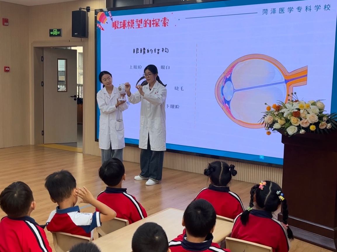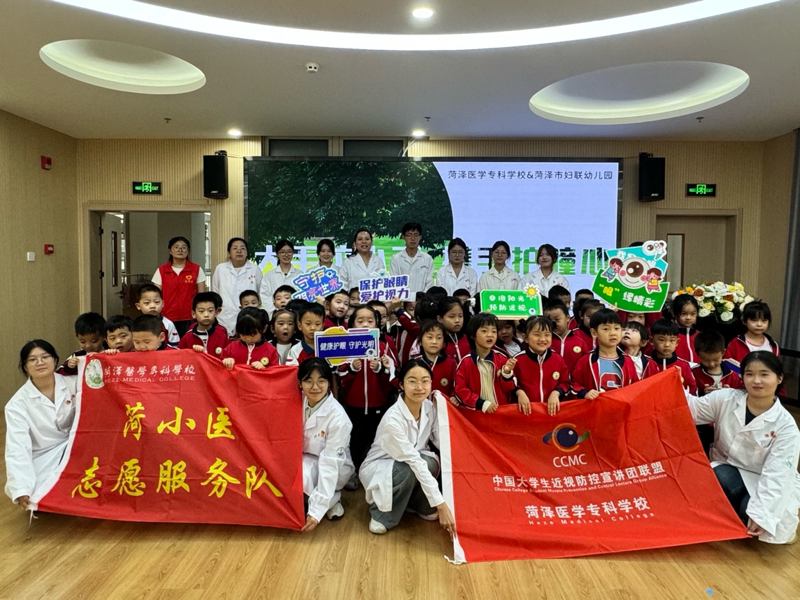 2025年9月我国迎来第11个全国近视防控宣传教育月,今年主题聚焦“保护儿童远视储备量,预防和减少近视发生”。为积极响应教育部关于把幼儿园作为近视防控“第一道关口”的号召,发挥专业优势,增强幼儿爱眼护眼意识,引导其养成科学用眼习惯,9月26日上午,我校医学技术系眼视光技术专业教师与沐光爱眼社的学生志愿者走进菏泽市妇联幼儿园,开展“点亮‘睛’彩,守护‘视’界”近视防控主题宣教活动,以科学专业的方式守护幼儿视力健康。