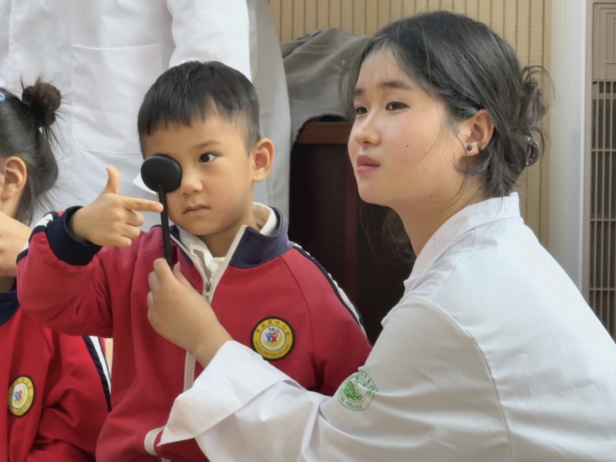 为切实关注幼儿视力健康状况,活动还安排了专业视力检查。由眼视光技术专业师生分组为100余名大班幼儿进行初步视力筛查,并建立视力健康档案,以实际行动践行近视防控“早监测、早发现、早预警、早干预”的专业理念。