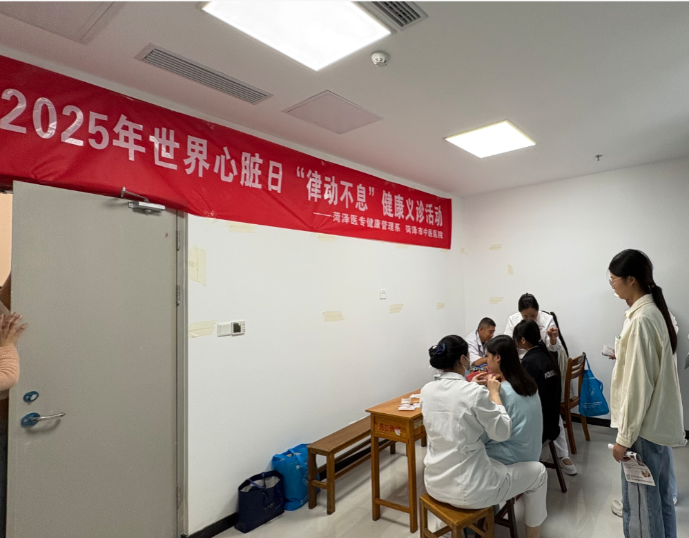 9月29日是世界心脏日,为进一步普及心血管疾病防治知识,推进健康中国建设,我校健康管理系和菏泽市中医医院联合举办2025年世界心脏日健康义诊活动。学校党委委员、副校长齐云飞,菏泽市中医医院副院长邓海霞、心内科副主任医师曹培镇、吕明,校学生工作处处长孙战,团委书记于淼,健康管理系党总支书记李莹以及健康管理系师生共400余人参与活动。