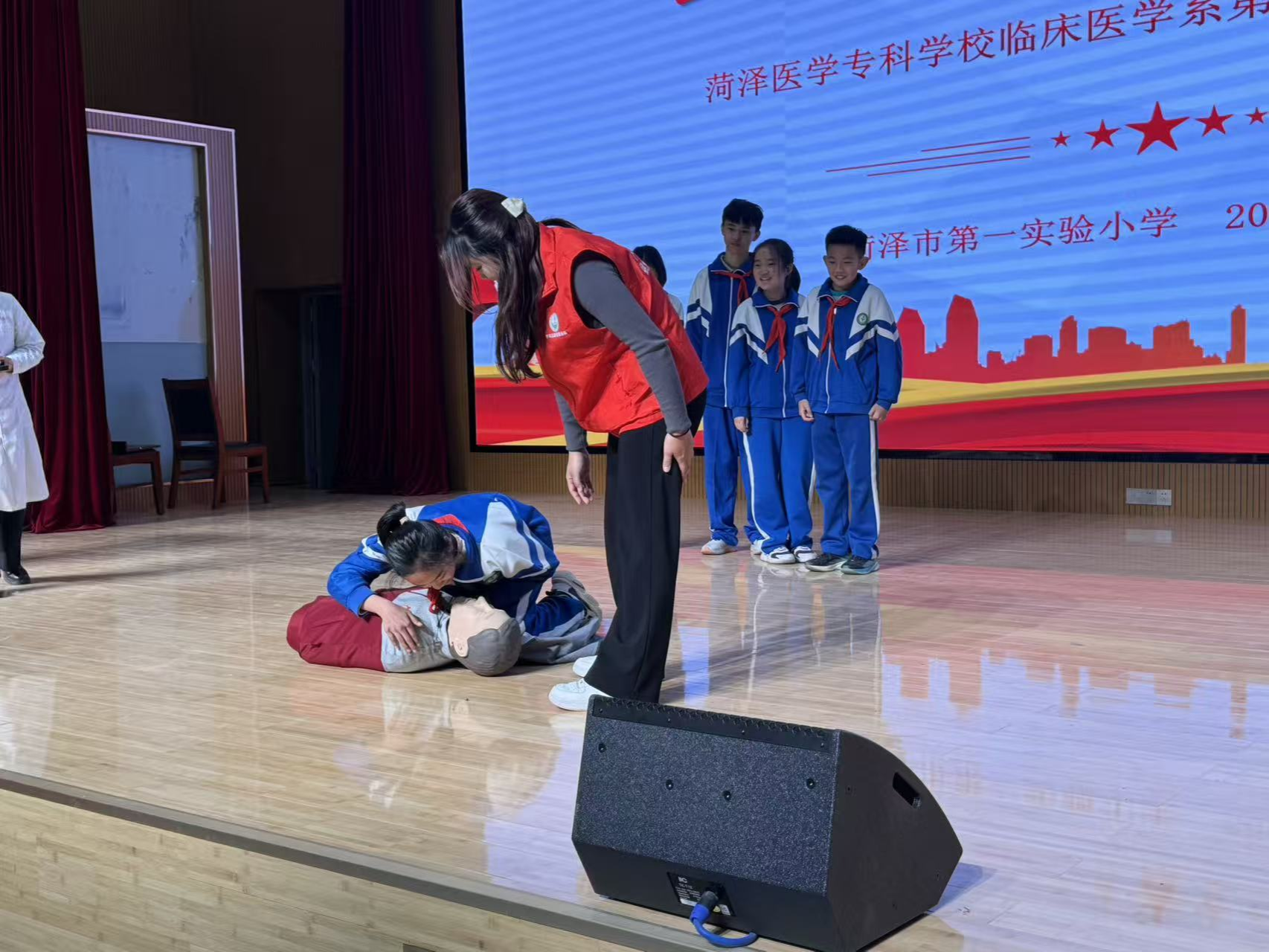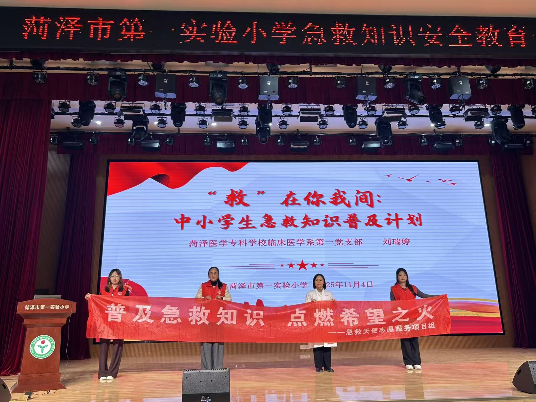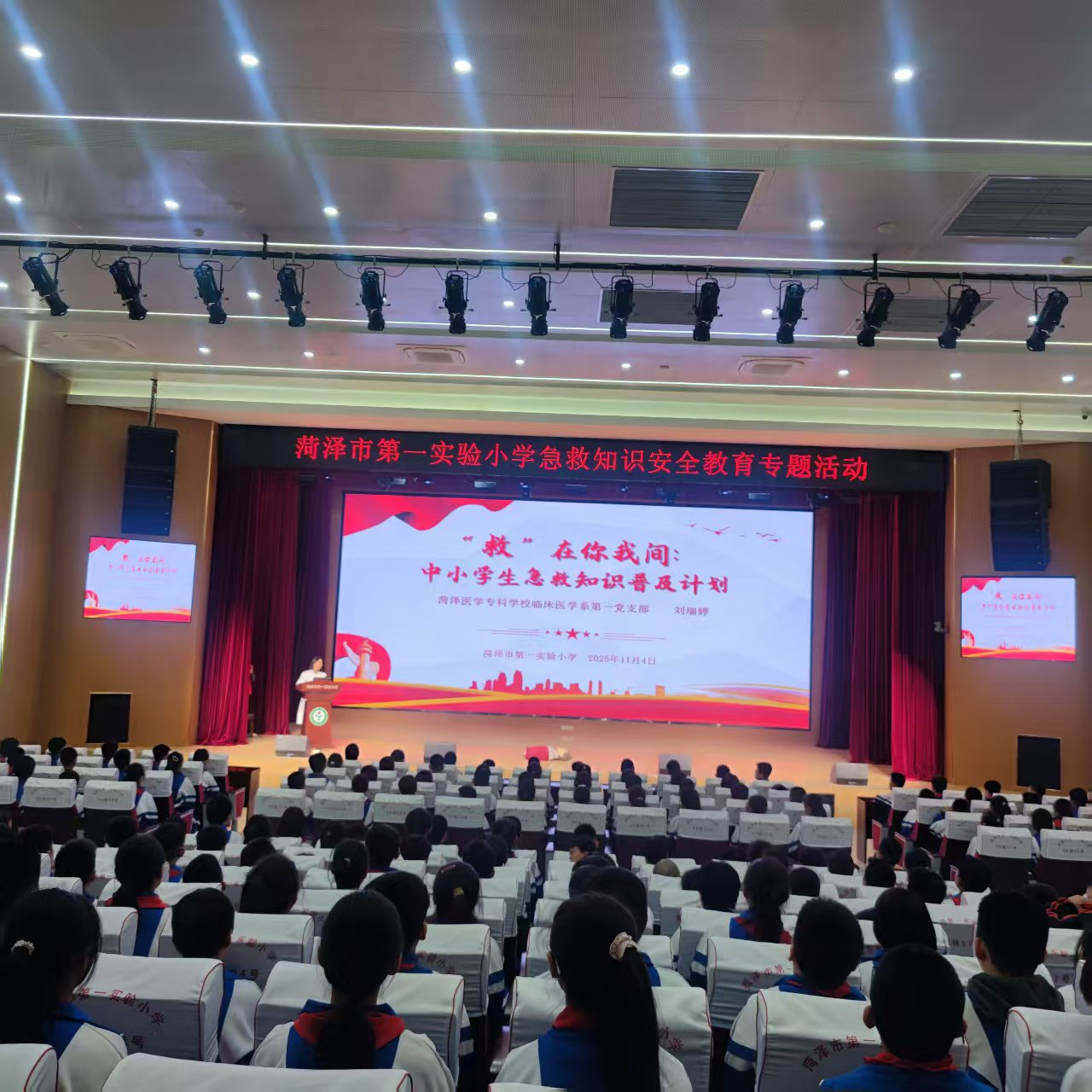 为积极响应“健康中国2030”战略号召,切实推动急救知识普及进校园,筑牢青少年生命安全防线,11月4日,我校临床医学系“急救天使”志愿服务队师生一行走进菏泽市第一实验小学中山路校区,开展以“普及急救知识,点燃希望之火”为主题的急救技能专项培训活动。本次培训由临床医学系内科学教研室副主任、第一党支部党员刘瑞婷副教授担任主讲,为该校300余名师生带来一堂兼具专业性与实用性的生命安全课程。