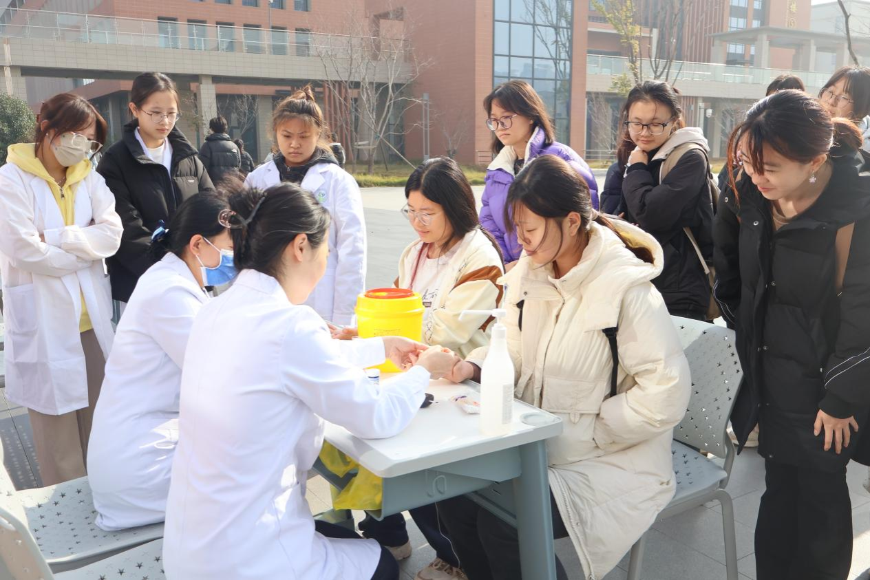 义诊活动中,由医专附院内分泌科医护人员和健康管理系志愿者组成的服务团队为前来咨询的同学进行血糖检测、血压测量、健康评估等。医护人员耐心为每位学生解读检测结果,结合其身体状况给出个性化的饮食、运动及健康指导。