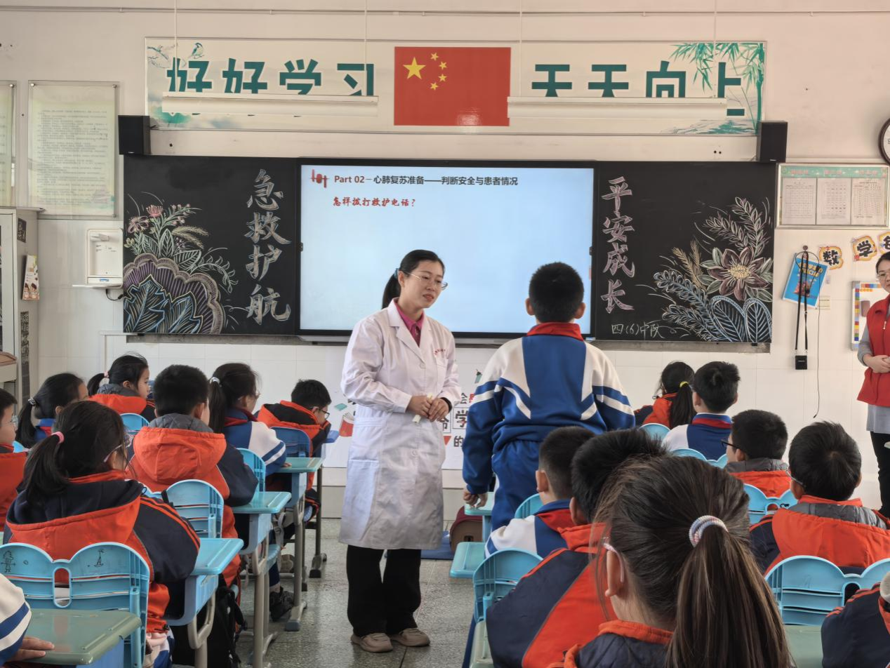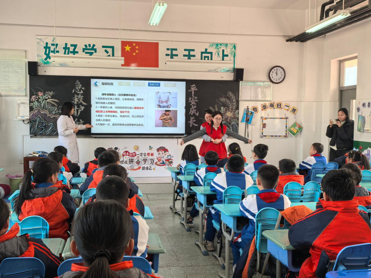 活动结合小学生认知特点,通过趣味动画、情景模拟、互动问答等形式,聚焦校园常见的摔倒受伤、异物卡喉等意外场景,生动讲解心肺复苏(CPR)与海姆立克急救法的核心要点。借助模拟人教具,老师们详细演示了胸外按压的力度频率、人工呼吸的姿势,以及海姆立克急救法的站位与按压位置等关键操作。