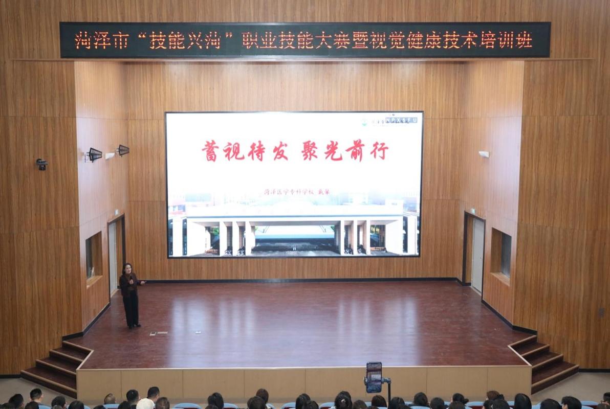 12月11日,菏泽市“技能兴菏”职业技能大赛暨视觉健康技术培训班在我校师生活动中心拉开帷幕。活动由菏泽市预防医学会眼视光分会与我校联合主办,旨在“以赛促训、以训提能”,共建区域视觉健康服务新高地。