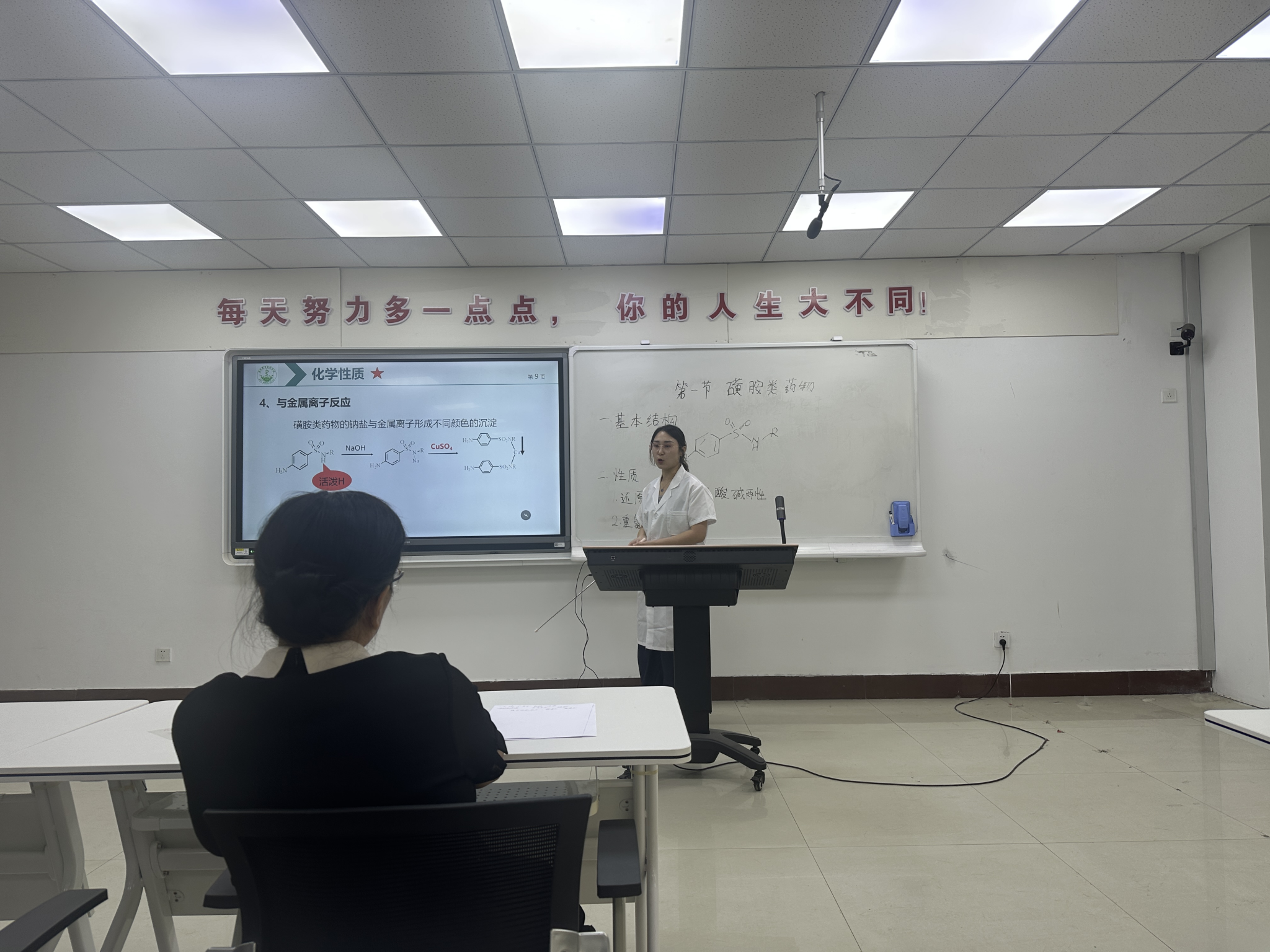 比赛过程中,参赛教师依次进行现场授课,内容涵盖药学、检验技术、化学等多个专业领域。教师们通过生动的案例、清晰的逻辑和多样化的教学方法,充分展示了扎实的专业功底和创新的教学理念。评委从教学内容、教学设计、语言表达、课堂互动及教学效果等方面进行综合评分,并对每位教师的表现给予细致点评与建议。